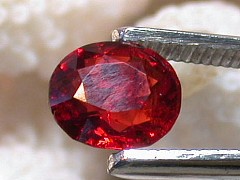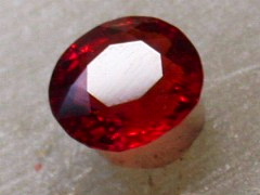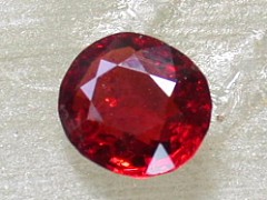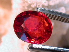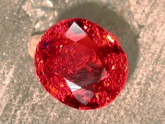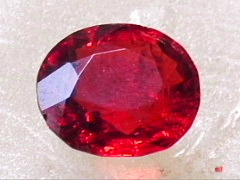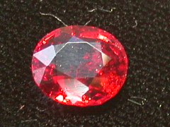 美しい黒味のない真赤なスピネルです、かなり大きく迫力があります。色は乗っていますが、強い光では明るくみえます。ピンクやワインといった色味は殆ど感じられず、濃い赤色です。光源によっては僅かにオレンジ系が感じられますがレッドスピネルです。