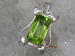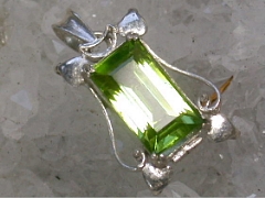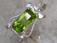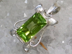 インクルージョンの少ない宝石質のミャンマー産ペリドットです。照りも良く端正な美男子といった感じの良質の石です。充分な大きさがあり、通常は金などで加工される石だと思います。ミャンマー製の完全ハンドメイド出仕上げてあります。お薦めの初々しい若草色のペリドットペンダントです。