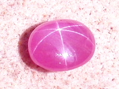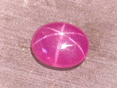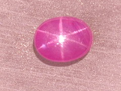 7.27カラットのパープルピンクのスターサファイアです。ミャンマーではこの色はルビーですが、日本ではサファイアと呼ぶ方がふさわしいと思います。